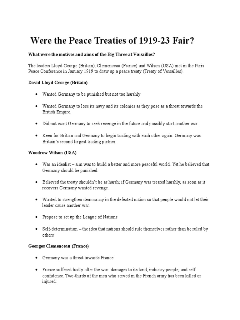 Notes On Were The Peace Treaties Fair Treaty Of Versailles League Of Nations